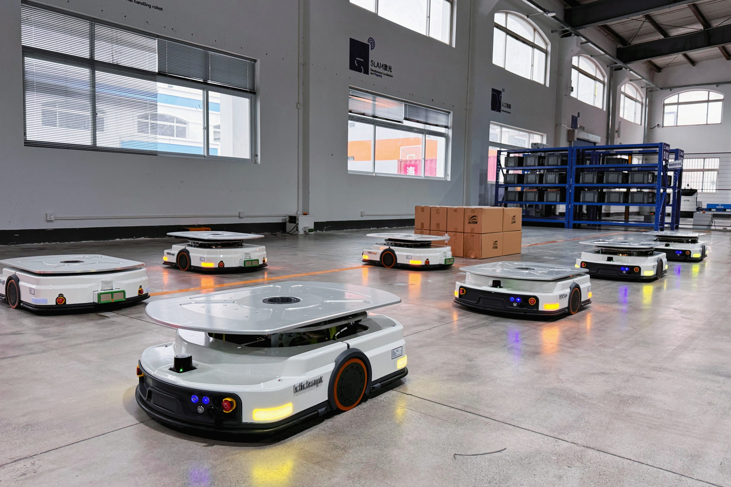 AGV 的智能化升级:部分 AGV 开始集成 SLAM 技术,如jcjc5500公海机器人推出的多款“混合导航” 车型,无需铺设物理导引设施,即可完成搬运任务。